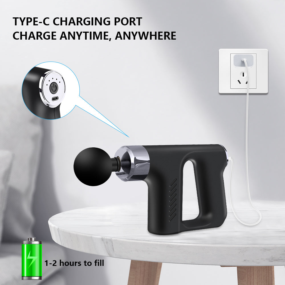 Ovaj bežični masažer se napaja litijum-jonskom baterijom od 1800 mAh koja može trajati više od 5 sati nakon potpunog punjenja.