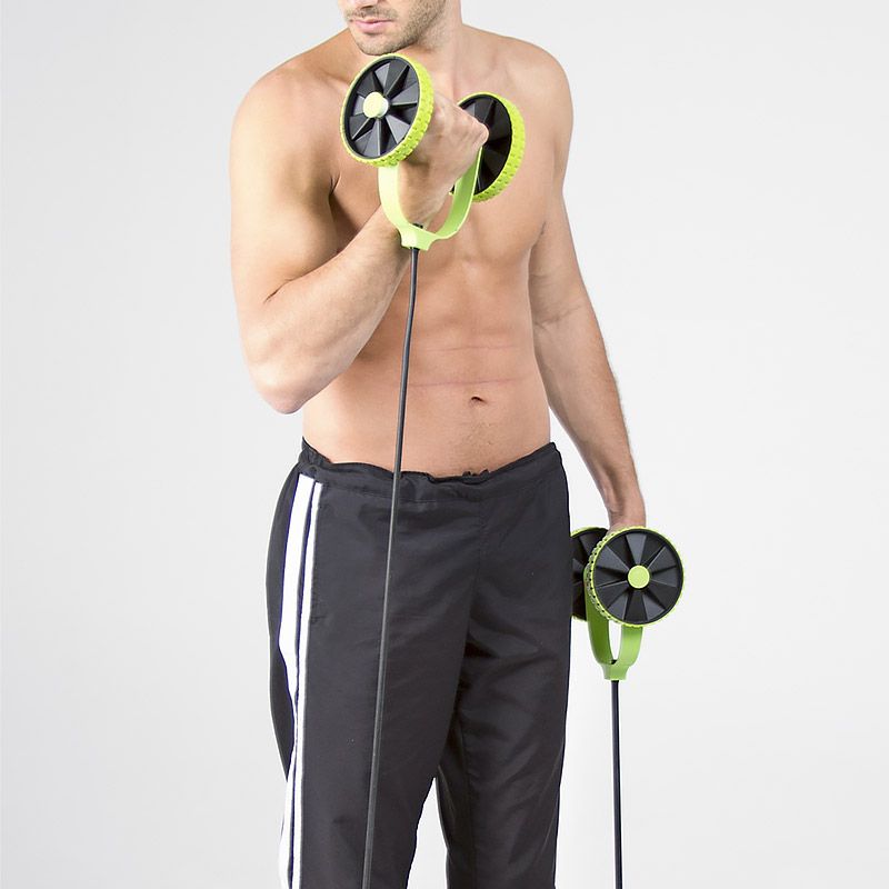 Sistem za vježbanje tijela s gumama i kotačima radi uz pomoć guma koje pružaju do 90% treninga mišića cijelog tijela.