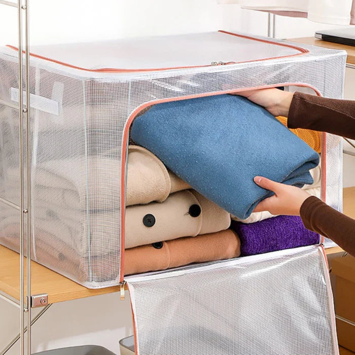 S okvirom od pocinčanog nehrđajućeg čelika debljine 4 mm, naša sklopiva kutija za pohranu donosi vam snažnu podršku i fleksibilnost. Kada nije u upotrebi, jednostavno ga preklopite i oslobodite vrijedan prostor.